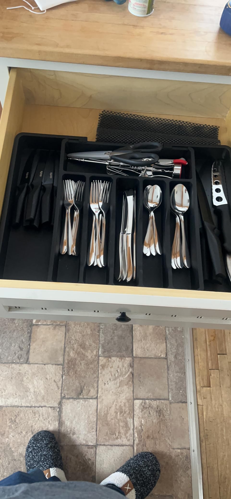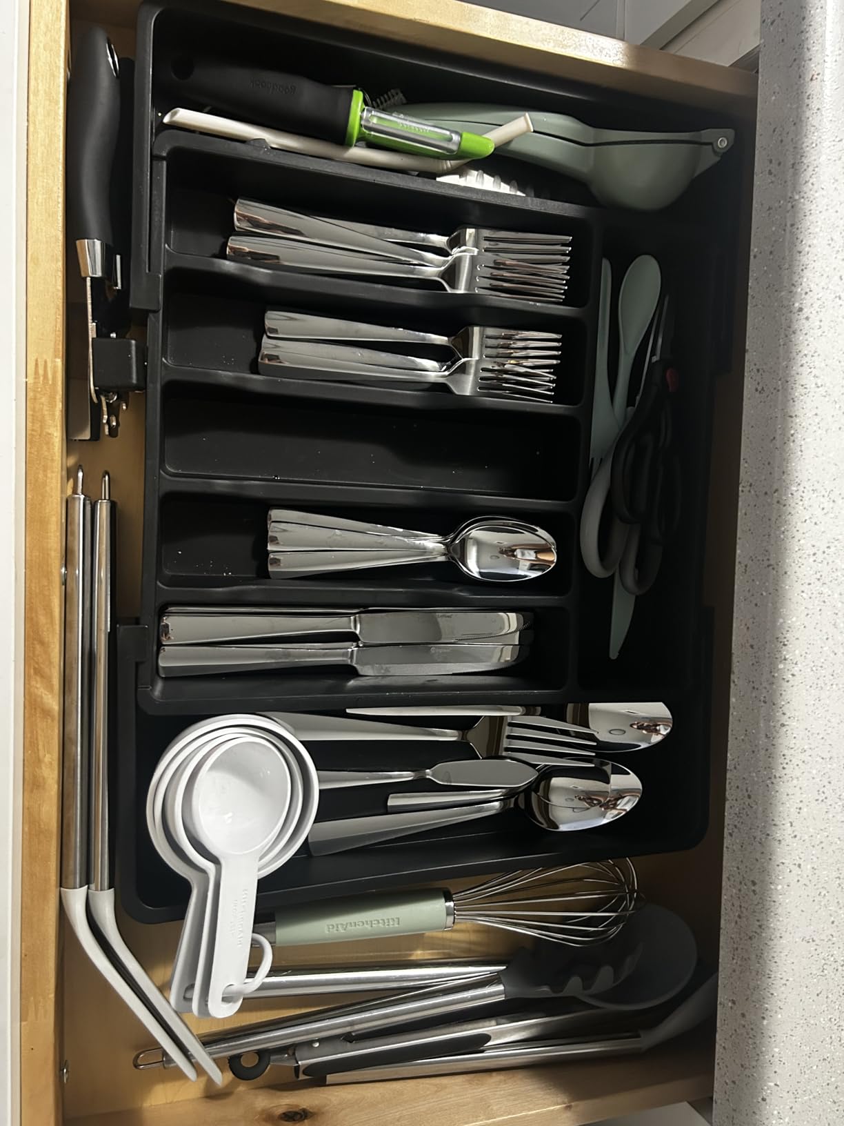This tray has been a total game-changer for my kitchen drawer! It expands perfectly to fill the space, and even fully extended, it stays in place really well (though I do recommend putting contact paper underneath just to keep it extra steady).